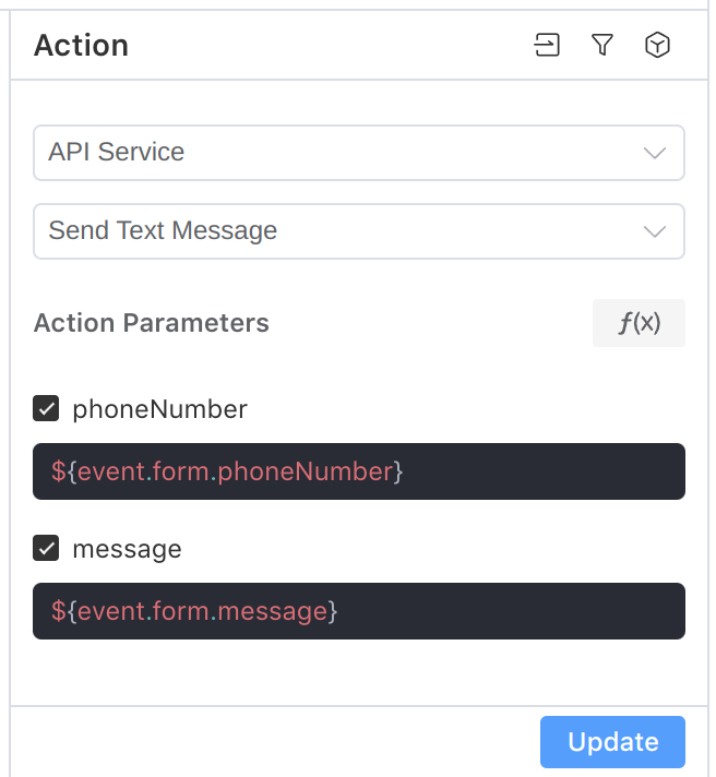 By incorporating the dynamic parameters, such as phoneNumber and message, into the API call, we enable the application to pass specific values to the function we've implemented. This allows for flexibility and customization, as the application can provide different phone numbers and messages based on the context or user input.