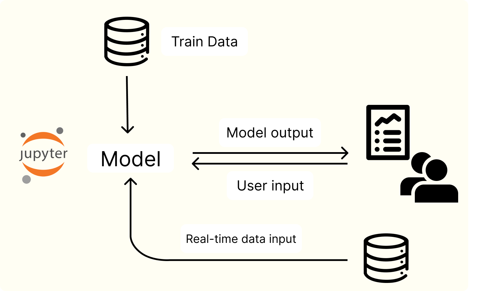 This issue is so widespread that some experts estimate up to 90 percent of ML models remain in Jupyter notebooks and are never utilized by real users other than the data analyst who built it. Data analysts have to run these models with new input in an offline notebook manually, and then copy the results to one page on their reports. This limitation capped the models' utilization, diminishing their potential value and impact.