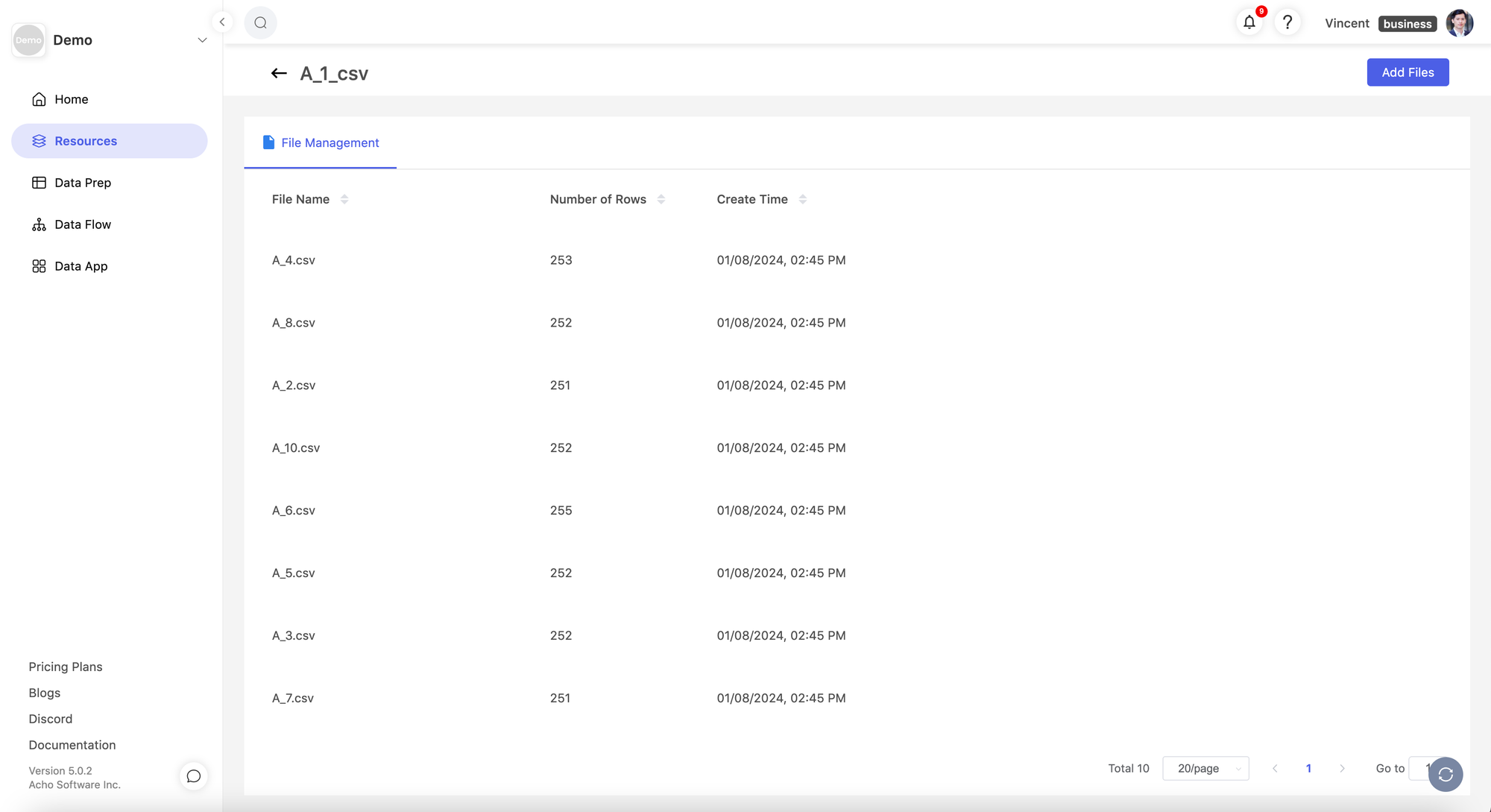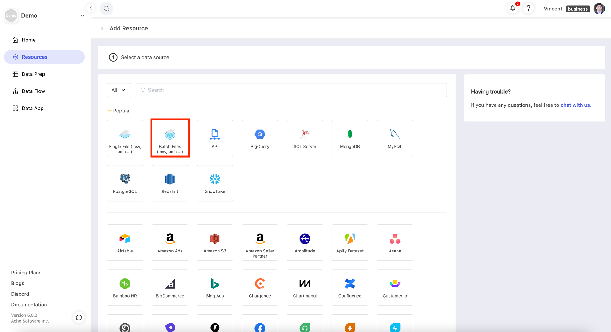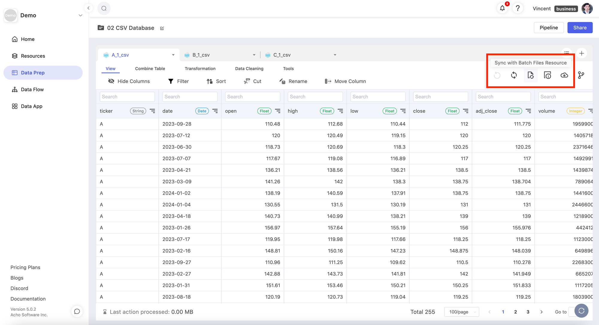 - Upload multiple CSV files (of the same schema) as a Batch CSV resource on Acho