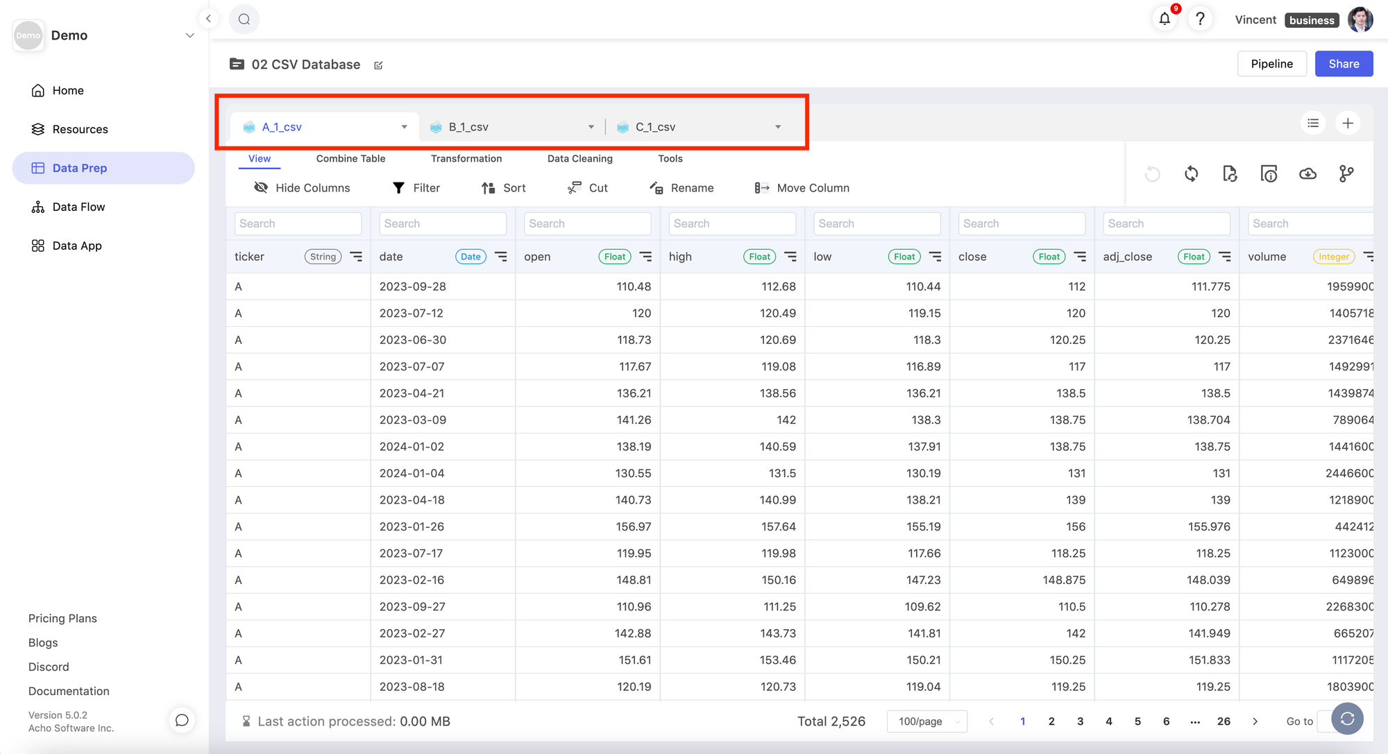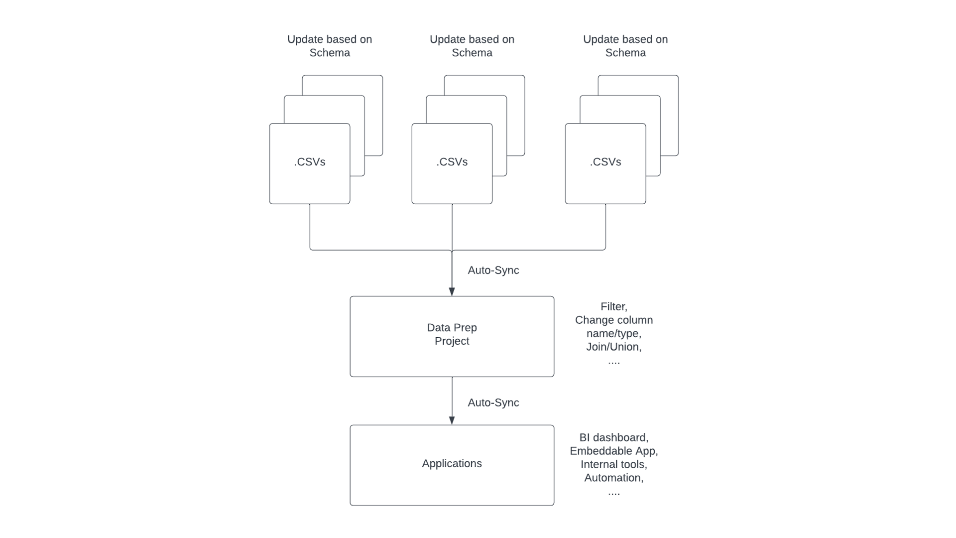 Once these "CSV batches" are opened in the same Data Prep project, you can now combine, and unify them to build a new "Master Table" to support your dashboard, application, and other use cases.