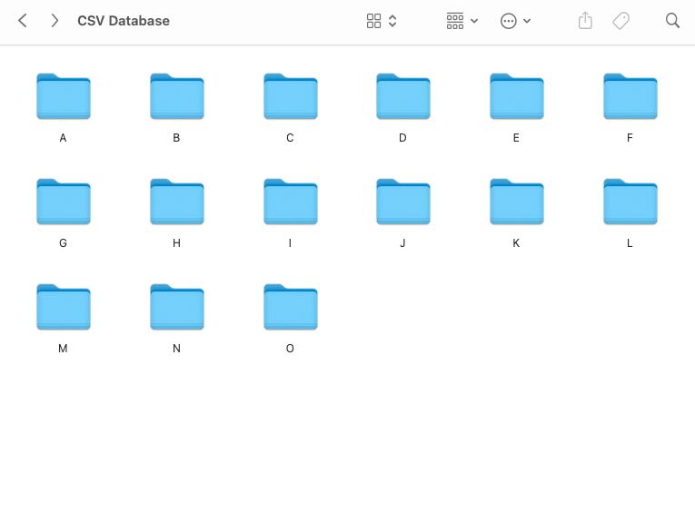 First, import your files to Acho Studio as a resource. Here I have a folder called “CSV Database”. It contains 15 folders named by alphabets. Each folder contains CSV files of a particular schema (column set) so we can use them to update the files later on.
