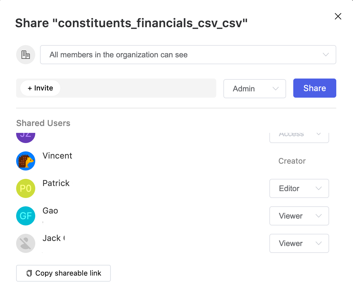 - After connection, share the data source by inviting your teammate