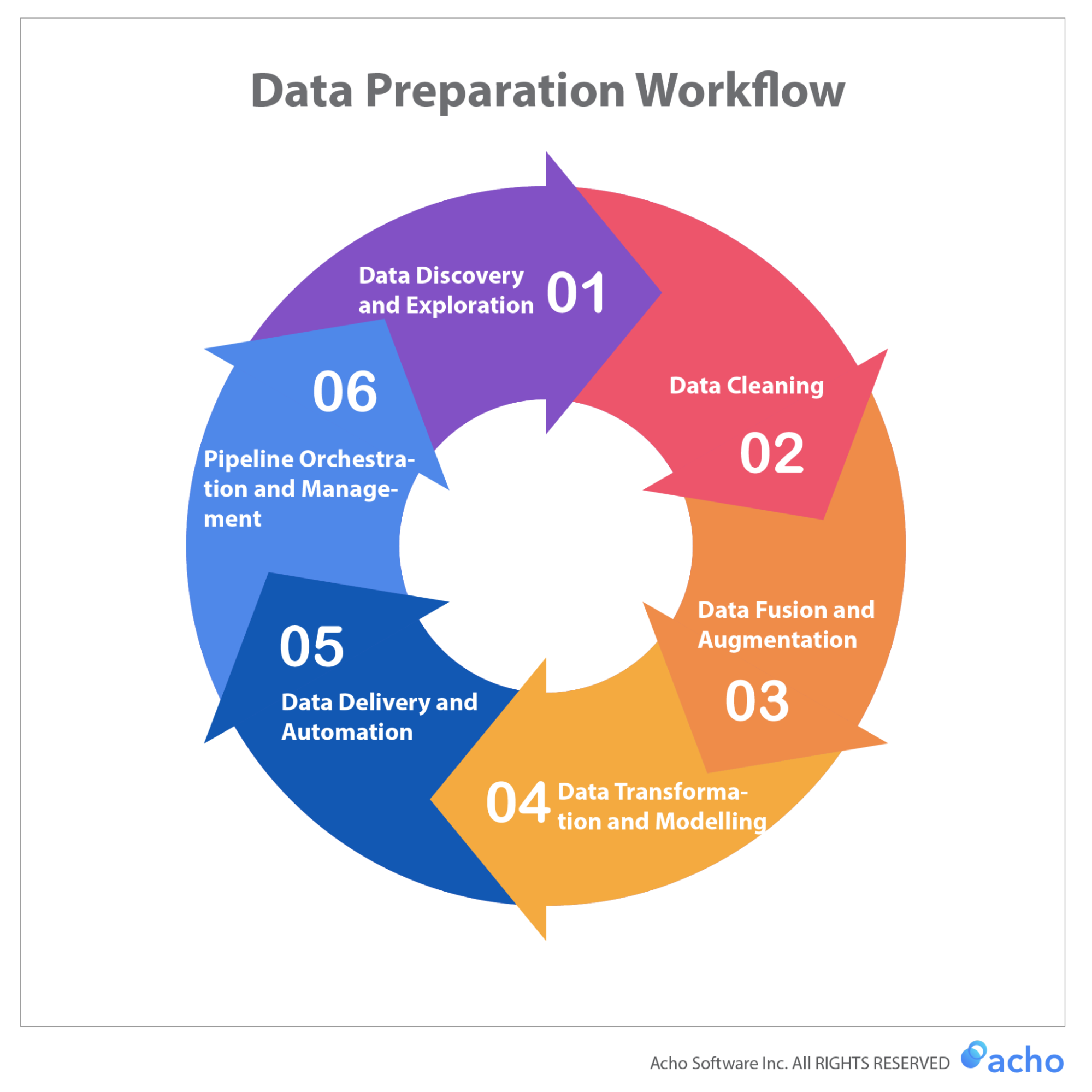 As the chart illustrates, data preparation is really a circular process where each step feeds into the succeeding step. Data Discovery for example typically leads to Data Cleaning and Data Fusion. It will also provoke new needs and requirements for Data Delivery and Pipeline Management. Imagine a COO reading an analytical dashboard for inventory management. They may require new data points to be reported. This would require the analysts and engineers responsible to go through the Data Preparation Workflow and add new data points to the dashboard.