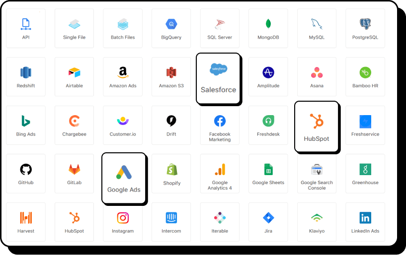 With Acho's built-in connectors, you can easily establish a live connection to your data sources, including databases or thrid-party applications.