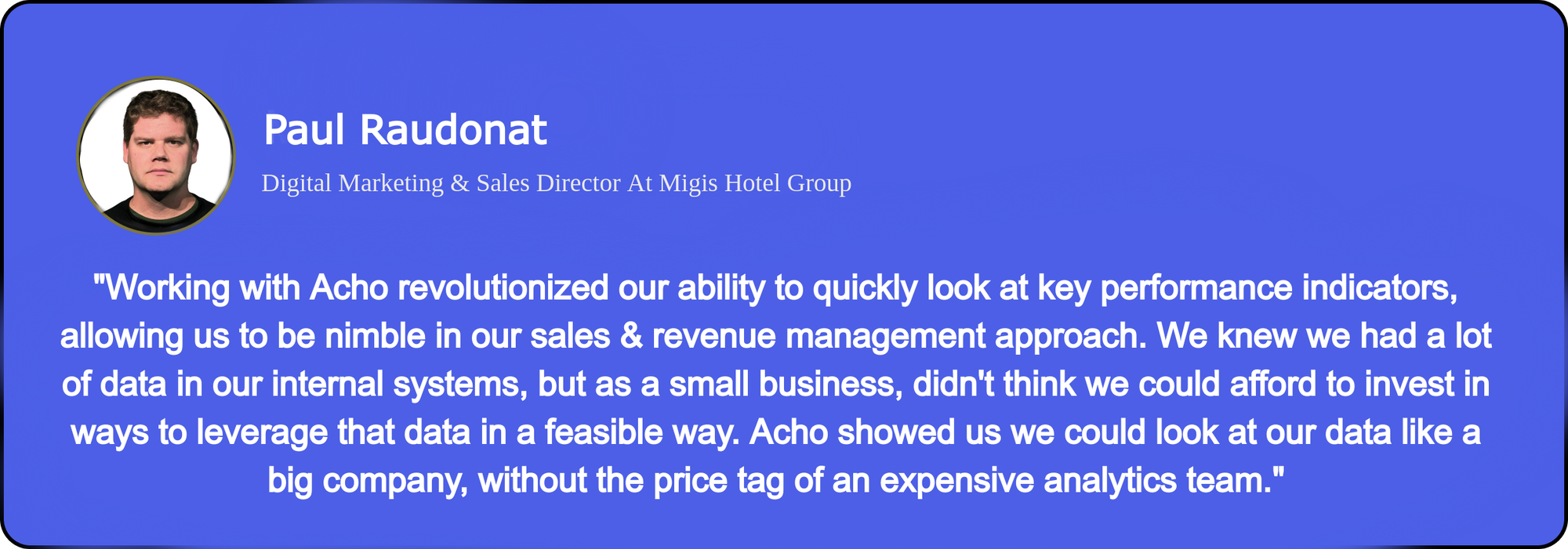 Acho provided a comprehensive solution that addressed Migis Hotel Group's Pace Reporting challenges: